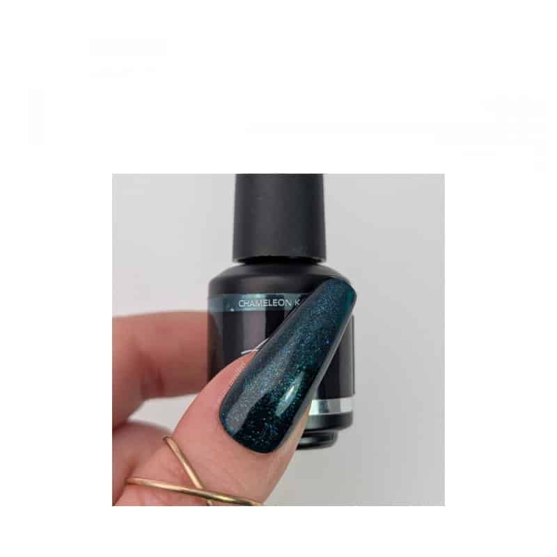 Plongez dans le mystère avec Chameleon Karma, une teinte profonde et sombre illuminée de paillettes scintillantes qui brillent comme une nuit de Noël magique. Parfait pour la femme mystérieuse prête à briller, cette couleur évoque une élégance festive et intrigante. Chameleon Karma est votre choix incontournable pour des ongles glamour et enchanteurs à l’approche de la saison des fêtes.